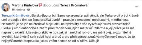 Jsem Tereza Krčmářová – vystudovaná aromaterapeutka s 14 lety praxe, lektorka mindfulness, máma tří dětí.