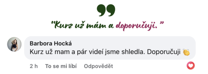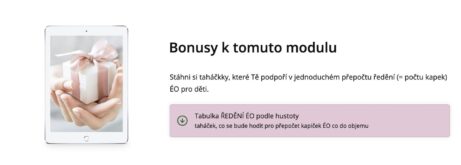 Jde mi o to, aby sis tento kurz maximáně užila a Tvoje finanční i časová investice se Ti vrátila brzy zpátky. Připravila jsem pro Tebe hodnotné bonusy, které Ti usnadní cestu, zpříjemní učení se novým věcem a podpoří tvou sebejistotu. Protože vědět, co máš dělat je pěkné, ale abys cítila efekt, potřebuješ praktikovat - a to jde i na pohodu.