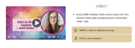 Proto jsem pro tebe připravila ke každému videu audio - mp3 nahrávku videa tak, abys mohla poslouchat třeba při vaření, uspávání, procházce nebo úklidu. A že nemáš ráda multitasking a nezapomatuješ si to? Nevadí, stáhneš si přece myšlenkovou mapu.