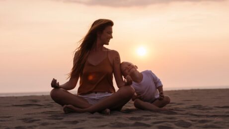 - 1× měsíčně: mini praxe (somatické cvičení pro Tebe i děti)