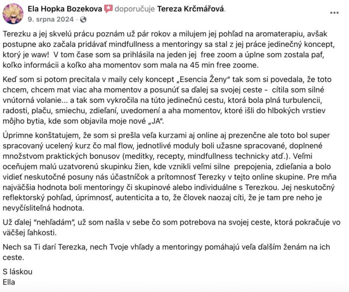 Proto propojuji aromaterapii, práci s tělem a mindfulness –aby ženy znovu objevily svou přirozenou sílu, uměly číst signály svého těla a dokázaly se zastavit dřív, než dojdou až na dno.