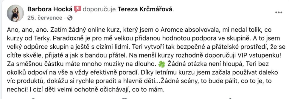Jsem Tereza Krčmářová – máma tří dětí, aromaterapeutka a průvodkyně žen a s oblibou říkám, že se mnou zvládneš dětské nemoci i mateřské bezmocnosti.