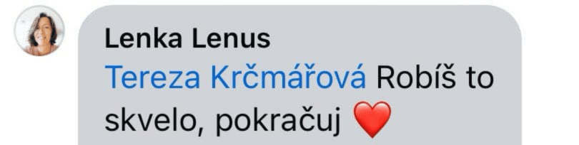 "Vnímala jsem od Tebe úžasnou podporu a soucit, jsi úžasná. Děkuji také za Tvou upřímnou zpětnou vazbu na problém, který si nyní řeším."