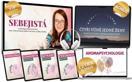 Kromě kompletního mentoringu Sebejistá 2.0 dostáváš praktické bonusy, které Tě podrží v každodenním životě a pomůžou Ti výsledky vidět rychleji a snadněji: